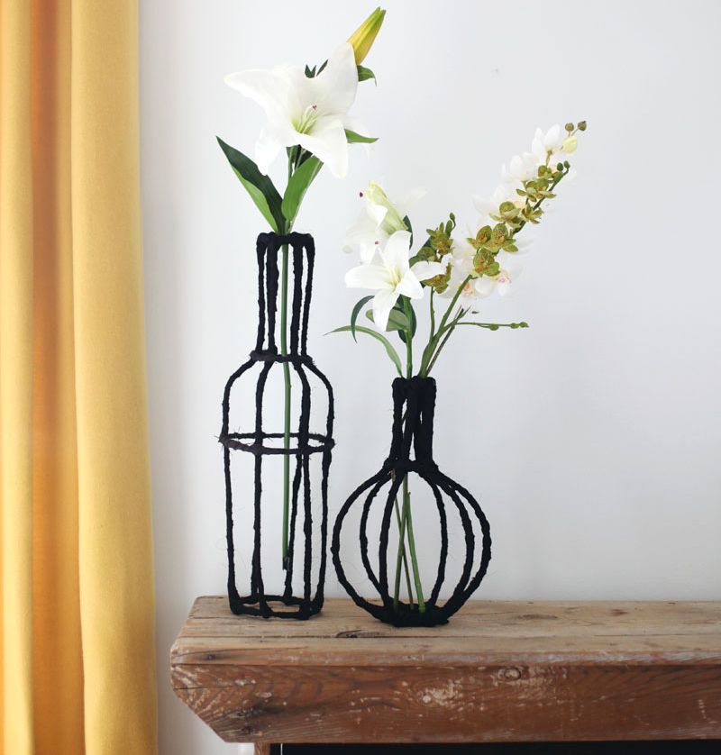 L'eau ne peut pas être versée dans une structure de fil créative, mais de belles fleurs artificielles la rendront plus esthétique.
