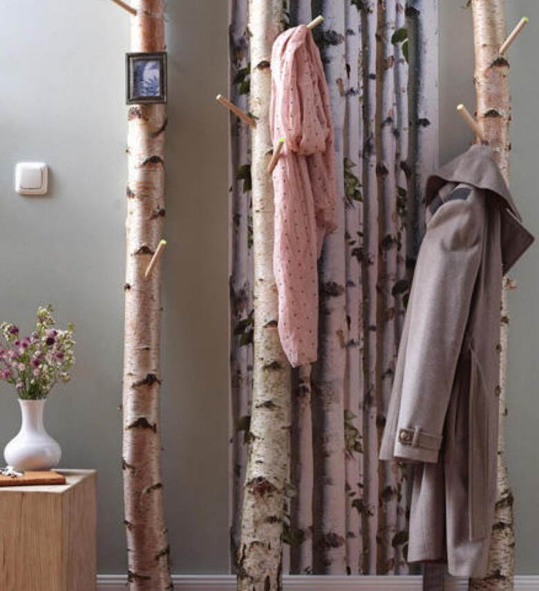 Les troncs de bouleau lisses semblent très impressionnants, mais ils doivent être complétés par des crochets faits maison.