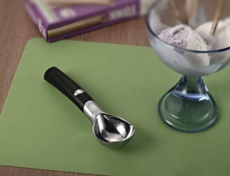 Salon de crème glacée à la maison - rien de plus simple, il vous suffit de vous procurer une cuillère «intelligente». L'appareil est en aluminium de haute qualité et a une bonne conductivité thermique. Pour cette raison, vous n'avez pas besoin d'attendre que la crème glacée dégèle pour être retirée du moule. Une cuillère «intelligente» transfère la chaleur des mains de la base de l'appareil à ses pointes et en quelques secondes la boule froide de forme parfaite est prête.