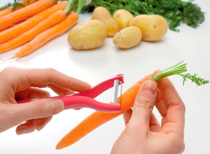 Un autre appareil qui peut faciliter le processus de cuisson et économiser de l'espace dans l'armoire de cuisine. Se compose de trois lames. Le premier aidera à peler facilement les fruits et légumes durs. Le second est conçu pour travailler avec des fruits doux et juteux. Troisièmement - un outil indispensable pour trancher les produits en bandes. Avec un fonctionnement correct, la durée de vie de l'appareil peut atteindre 30 ans.