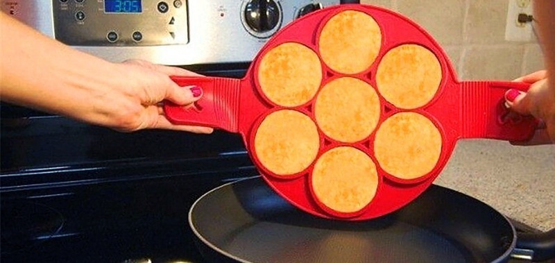 La femme au foyer parfaite dans la cuisine est parfaite. Y compris la forme des crêpes. Le secret du succès est simple, il suffit d'obtenir un pochoir spécial. Il est superposé à la poêle, la pâte est versée dans des trous spéciaux. Une fois qu'un côté est cuit, en tenant les poignées de l'appareil, il est facile de tourner les crêpes de l'autre côté. Le changeur de forme peut également être utilisé pour faire des œufs brouillés et des côtelettes.
