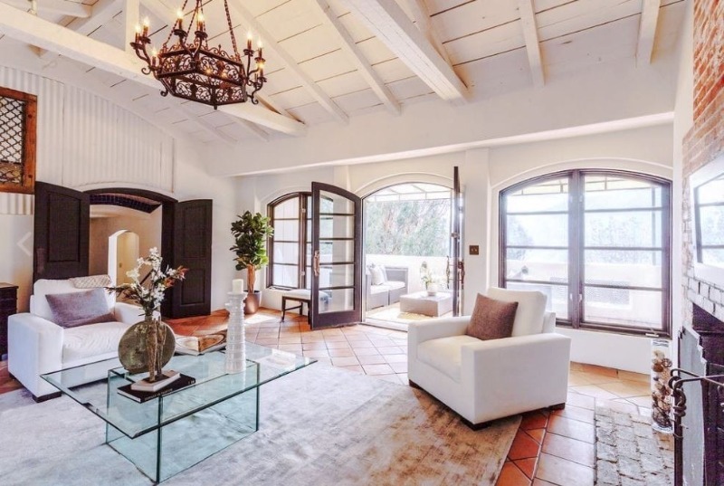 Salon joliment décoré avec une vue imprenable et une immense terrasse. Fauteuils confortables, moquettes moelleuses au sol et cheminée - c'est dans cette ambiance que la star adorait se détendre.