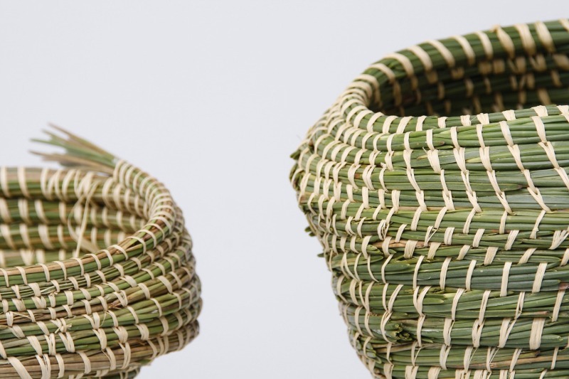 Pour la base, prenez un petit tas d'aiguilles et enveloppez-le bien avec du fil. Enveloppez la base avec un «escargot» tout en continuant à envelopper le paquet. Ajoutez-y progressivement de nouvelles aiguilles pour que l'épaisseur du faisceau soit toujours la même. Cousez les couches les unes aux autres périodiquement pour faire un produit solide. Selon la taille du futur bol, pliez-vous progressivement pour former une dépression. À la fin des mailles, complétez le bord pour que le bol soit net.