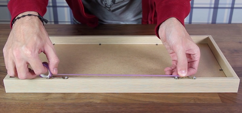 - Mettez une bande de ruban adhésif sur le mur et l'autre sur le cadre et collez-les ensemble.