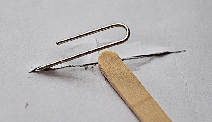 - Pliez le trombone de sorte qu'un crochet se forme d'un côté et une dent droite de l'autre.
