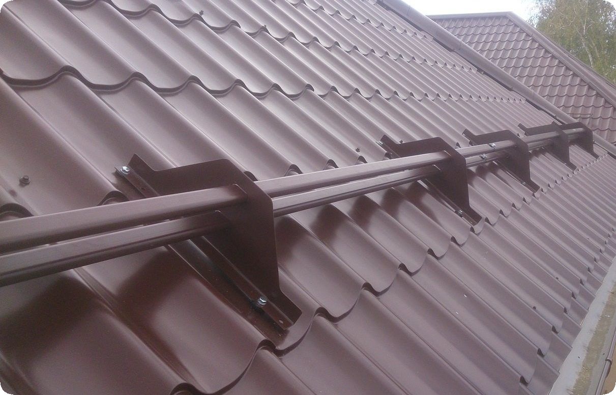 Ceci est particulièrement important sur le matériau de toiture le plus populaire aujourd'hui - les tuiles métalliques et les panneaux ondulés. Les tôles profilées ont une surface lisse. Avec des températures extrêmes, la neige dégèle et gèle à nouveau, formant une couche de glace. Avec un dégel plus long, un tel bloc de neige glisse à grande vitesse. Cependant, les experts recommandent l'utilisation de la rétention de neige sur le toit de tout matériau si son angle d'inclinaison dépasse 6 degrés.