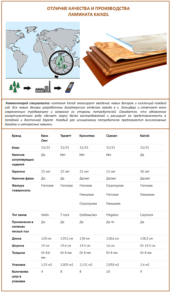 Quant au prix, pour certains il est élevé, pour quelqu'un au contraire, le stratifié est de la série budget. Nous dirons seulement que ce revêtement de sol est plus cher que domestique ou chinois, mais de nombreuses marques mondiales sont encore plus chères.