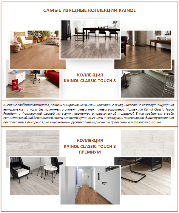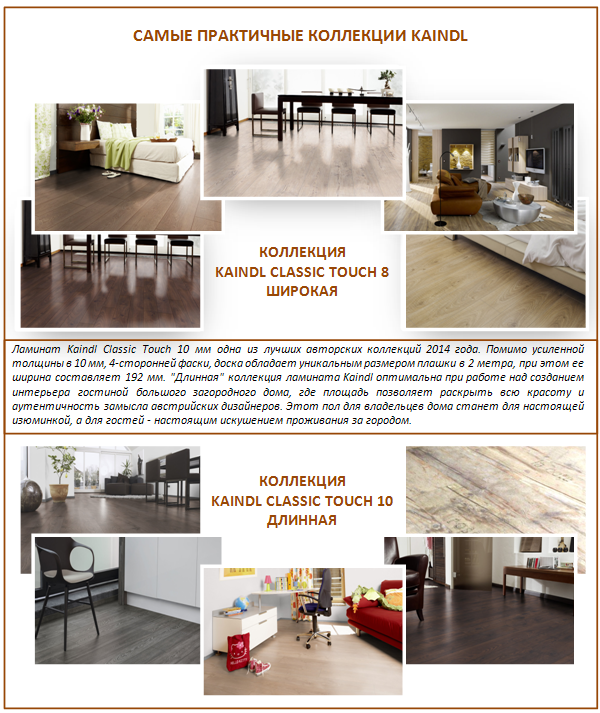 Le stratifié Kindl est utilisé à la fois à des fins domestiques et commerciales. Mais le plus précieux est qu'un tel revêtement de sol est compatible avec un sol chaud.