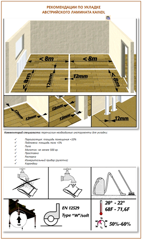 Vous pouvez installer le stratifié Kaindl avec un film et un système de chauffage au sol, mais il ne peut pas être combiné avec un système électrique, selon les représentants de l'entreprise.