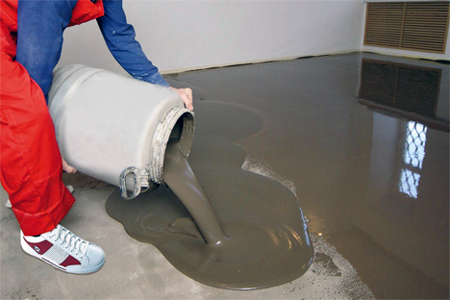 - verser une chape autonivelante. Le remplissage doit commencer à partir du point le plus haut du sol - la masse se "répartira" par gravité le long de la surface.
