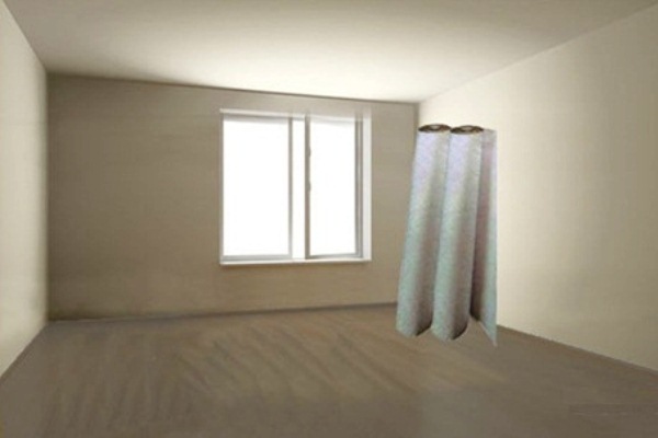 - Avant de couper, les rouleaux de linoléum placés verticalement doivent juste se tenir dans la pièce prévue pour l'arrangement.