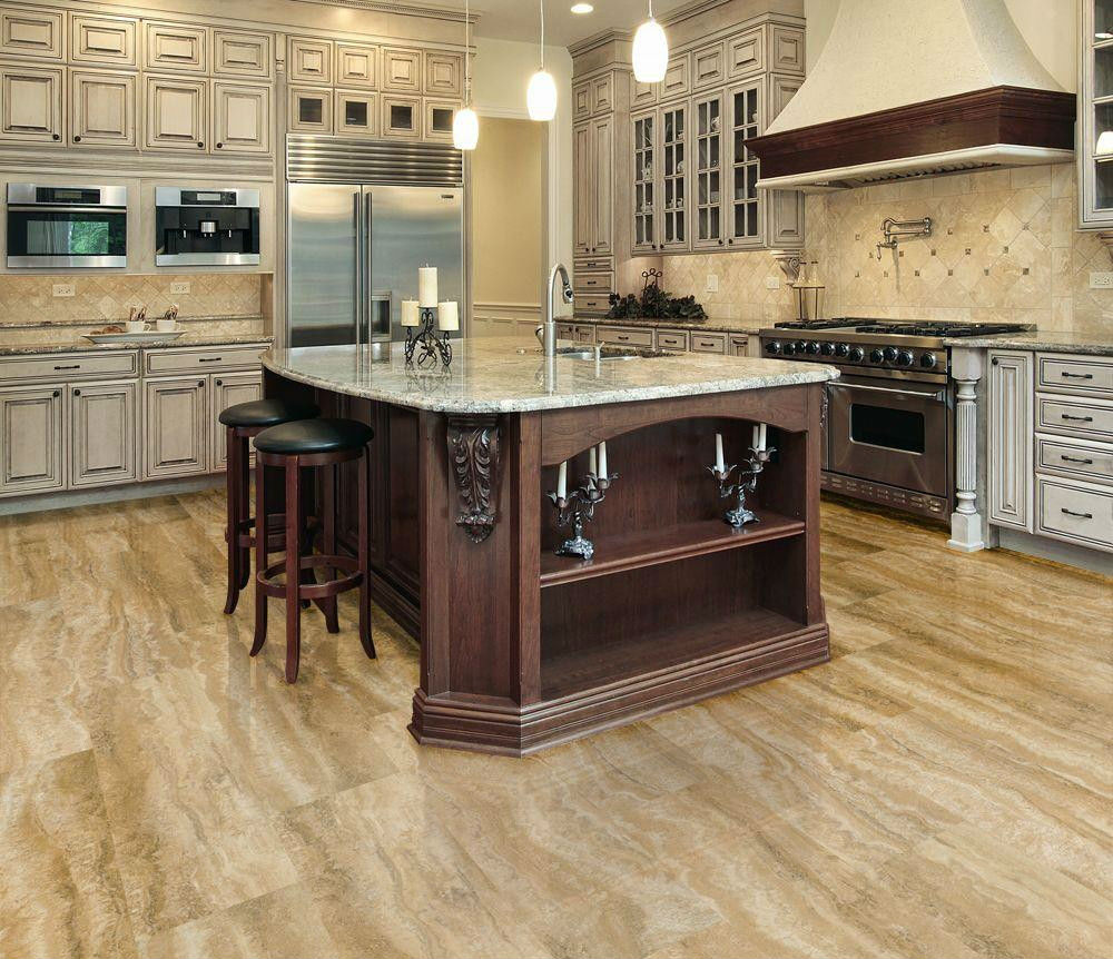 Carreaux de sol en quartz-vinyle - une nouveauté sur le marché des matériaux de construction. Il est doté des qualités des carreaux de céramique et du linoléum. Parmi les avantages, on peut noter une résistance accrue, un respect de l'environnement et une résistance à l'humidité. De plus, la surface n'est pas glissante, ce carrelage est donc optimal pour la cuisine et la salle de bain.
