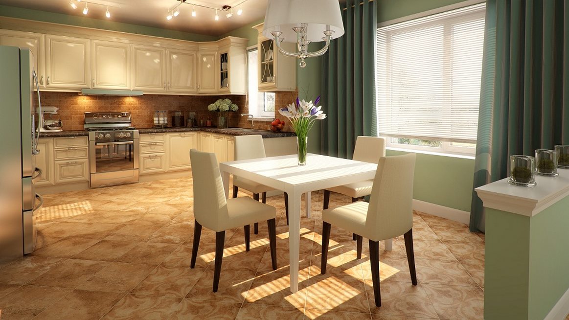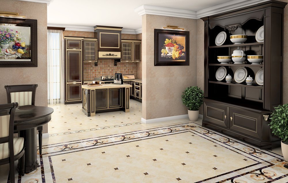 À l'intérieur de la cuisine, les carreaux sont utilisés assez souvent. Cette option pratique et économique de revêtement de sol vous permet de concevoir une pièce dans n'importe quel style.