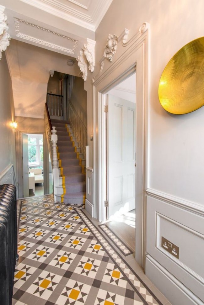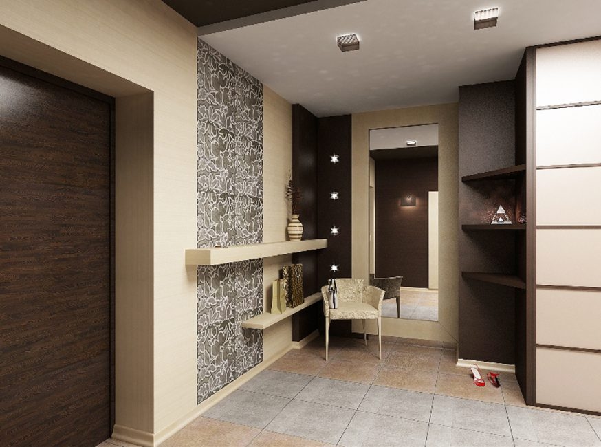 Carreaux de sol à l'intérieur du couloir: solutions sur la photo
