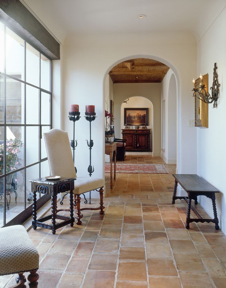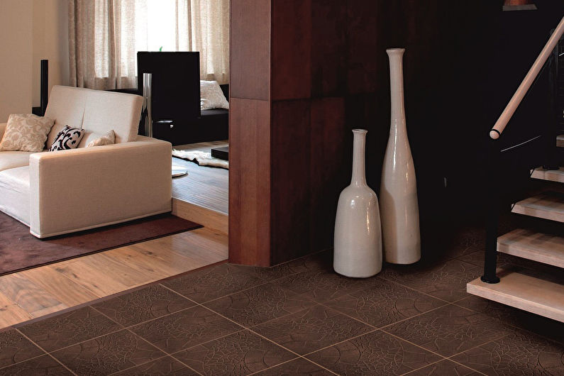 Le sol du couloir est affecté par des facteurs négatifs tels que la saleté, le sel, la poussière, les dommages mécaniques (talons, par exemple). Par conséquent, les experts conseillent de choisir une tuile pour le revêtement de sol dans le couloir avec une responsabilité particulière. En plus de la qualité du matériau utilisé pour cette partie de la maison, il est nécessaire de prendre en compte la palette de couleurs de la tuile, ainsi que la méthode de maçonnerie. Des carreaux correctement sélectionnés à l'intérieur du couloir peuvent décorer le design de tout l'appartement.
