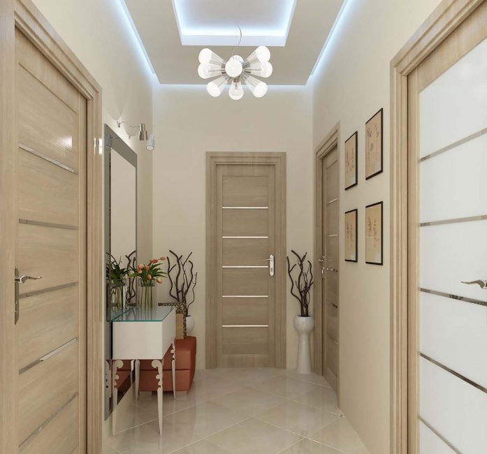 Pour diversifier l'intérieur du couloir, la pose de carreaux de différentes manières sera utile.