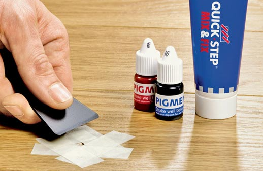Sans aucun doute, les rayures sont les dommages les plus courants qui nécessitent un bon camouflage. Première option - un crayon spécial à base de cire est sélectionné qui correspond à la palette de couleurs de la planche de parquet. Ensuite, il doit être fondu et une cire ramollie appliquée sur une égratignure disgracieuse. L'étape suivante consiste à niveler la surface, en enlevant tout excédent de cire avec une spatule en caoutchouc. Après cela, la surface est polie avec un chiffon doux.