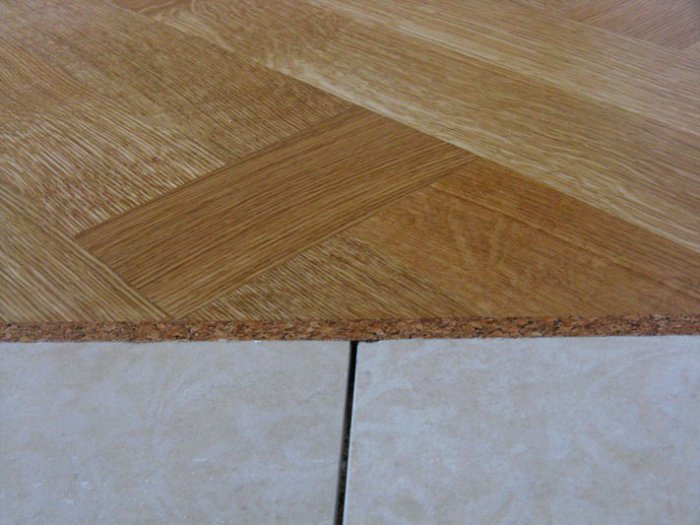 À la jonction du parquet avec un revêtement fixe, par exemple, les carreaux de céramique, le marbre, la pierre, les joints de dilatation doivent rester. Si les lignes de plancher sont droites, il est plus facile de le faire avec des seuils décoratifs. Mais avec les formes ondulées de revêtement et les transitions rondes actuellement à la mode, il est plus pratique d'utiliser des seuils thermoplastiques ou des compensateurs en liège. Ce dernier sera également utile si vous souhaitez faire la transition d'un revêtement à un autre aussi inaperçu que possible.
