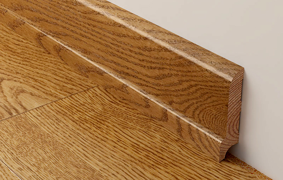 Les plinthes les plus chères et spectaculaires, bien sûr, de la gamme. En règle générale, ils sont fabriqués à partir de bois entier d'essences précieuses, par exemple de chêne, d'acajou, de hêtre, de wengé. Ils ont l'air magnifique, sont combinés avec le parquet d'élite autant que possible et, en outre, sont un matériau entièrement naturel et respectueux de l'environnement. Cependant, les plinthes de la matrice ont toujours un inconvénient - avec une humidité accrue, elles peuvent changer de forme et de courbure.