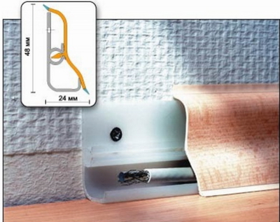 Important! Les poteaux de parquet ne sont pas utilisés pour l'installation de plinthes plaquées, car il n'est pas souhaitable d'endommager l'intégrité de la couche supérieure (placage).