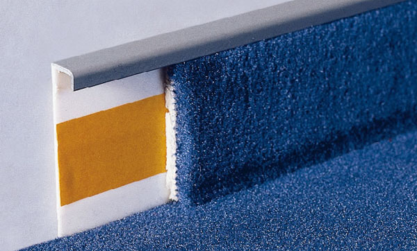 Le premier est en forme de L et avec sa partie inférieure appuie le revêtement de finition sur la base. La rainure réalisée dans la partie supérieure est utilisée pour fixer le bord du tapis, qui est poussé contre le mur. La fixation s'effectue à l'aide de chevilles. Visuellement, le cadre périphérique ne diffère pas du matériau principal, ce qui rend cette option élégante et moderne.