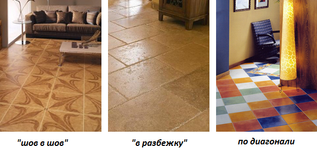 - en rangées droites ou "couture en couture" - la tuile est posée en rangées droites, et les coutures des carreaux sus-jacents et sous-jacents coïncident.