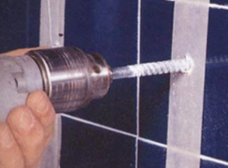- Parfois, vous pouvez utiliser une perceuse et une perceuse pour un perforateur. Le foret est serré dans la cartouche, d'abord ils forent la tuile (mode sans impact), puis changent de mode et forent le mur. Le forage est effectué à basse vitesse.