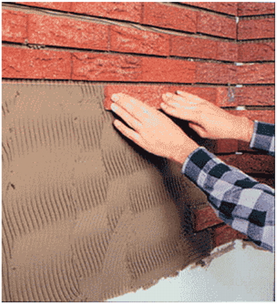 - Une petite quantité de colle est appliquée sur le mur de sorte qu'il doit être recouvert de carreaux de clinker pendant 20-30 minutes. Ne laissez pas l'adhésif sécher, car cela pourrait affecter la détérioration de l'adhérence. Si vous ne pouvez pas vous adapter en raison de la faible vitesse de pose des carreaux, il est préférable d'appliquer de la colle non pas sur le mur, mais directement sur chaque carreau. Vous pouvez corriger les carreaux mal posés dans les 10 à 15 minutes suivant l'installation.