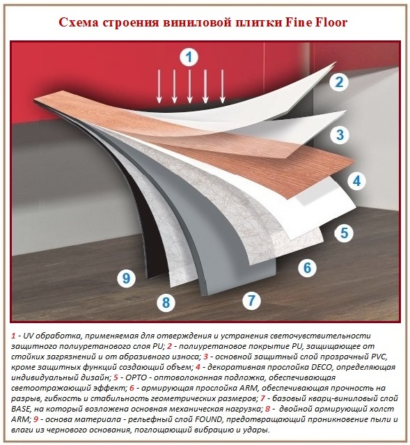 L'avantage indéniable des carreaux de sol en vinyle en combinant les meilleures qualités de certains des revêtements les plus populaires. Il s'agit d'une symbiose de la flexibilité du linoléum, de la stabilité de la pierre naturelle, de la simplicité et de la rapidité de construction des sols stratifiés.