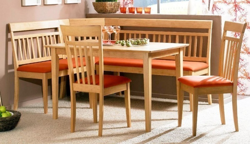 Le canapé fixé au mur est plus spacieux que des chaises séparées. Il convient même à une grande famille. Le nouveau développement est un coin cuisine, qui se transforme en un lit confortable et est utilisé comme lit pour l'un des membres du ménage ou comme lit d'appoint.