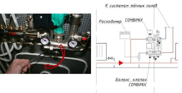 - Au stade final, l'installation d'un dispositif de vanne de type à deux ou trois voies est effectuée, l'installation d'équipements de pompage et d'autres composants inclus dans l'ensemble complet de peigne pour le système de chauffage "plancher chaud".