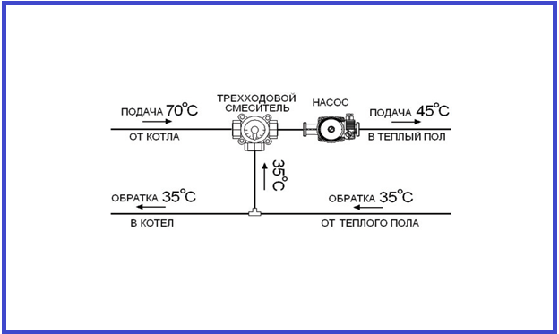 Le principal inconvénient de la conception avec une vanne à trois voies est la possibilité d'entrée d'un caloporteur chaud et le risque de pression excessive à l'intérieur du système, ce qui affecte négativement les tuyaux et réduit considérablement leur période de fonctionnement. Dans le même temps, la complexité de la régulation la plus précise des indicateurs de température est due à la présence d'un débit accru, donc même une légère rotation de l'amortisseur peut provoquer un changement de température notable dans le système de «plancher chaud» de 3 à 5 ° C.