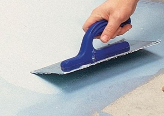- appliquer la composition adhésive sur la surface, l'adhésif doit être réparti uniformément sur une surface de 1 m² avec une spatule crantée, il n'est pas recommandé d'appliquer la solution adhésive sur une grande surface, car la composition durcit rapidement;